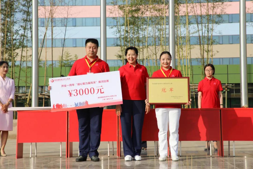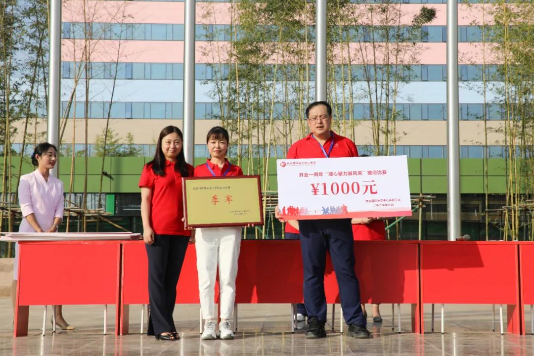 經過激烈的角逐、耐力的考驗、體力的較量,冠、亞、季軍相繼產生,綜合科室隊一舉奪冠,機關隊獲得亞軍,腦科醫(yī)院隊獲得季軍??祻歪t(yī)院醫(yī)療總監(jiān)汪愛勤、西安國際醫(yī)學中心醫(yī)院副院長李武平、財務總監(jiān)王亞星分別為獲獎隊伍頒發(fā)榮譽證書。
