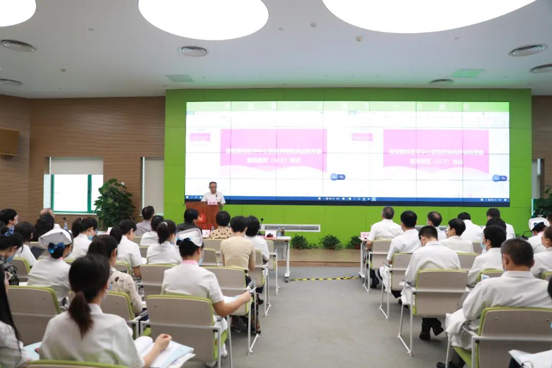 為推動我院藥物臨床試驗機構(gòu)備案工作的順利進(jìn)行,8月20日,西安國際醫(yī)學(xué)中心醫(yī)院舉辦藥物臨床試驗質(zhì)量管理規(guī)范(GCP)培訓(xùn)。尹強院長、楊峰副院長、各專科醫(yī)院院長、科室負(fù)責(zé)人及醫(yī)務(wù)人員共200余人參加。會議由楊峰副院長主持。