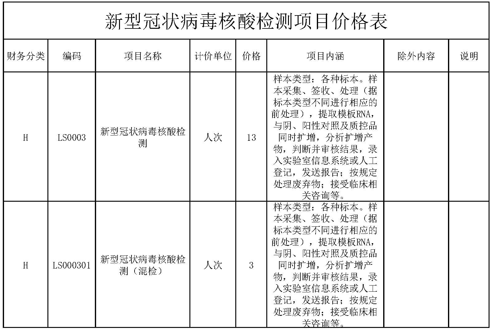 新型冠狀病毒核酸檢測(cè)項(xiàng)目?jī)r(jià)格表
