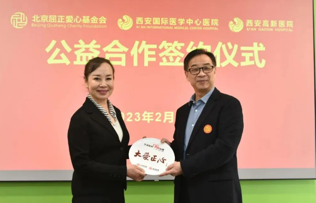 2月14日上午,西安國際醫(yī)學(xué)中心醫(yī)院、西安高新醫(yī)院與北京屈正愛心基金會公益合作簽約儀式在西安國際醫(yī)學(xué)中心醫(yī)院保障樓舉行,北京屈正愛心基金會創(chuàng)始人屈正、理事魏曉輝,國際醫(yī)學(xué)副總裁孫文國,西安國際醫(yī)學(xué)中心醫(yī)院院長尹強,西安高新醫(yī)院總經(jīng)理范郁會、院長宋瑛及醫(yī)院相關(guān)部室、??漆t(yī)院負責(zé)人等出席活動,西安國際醫(yī)學(xué)中心醫(yī)院副院長付強主持儀式。